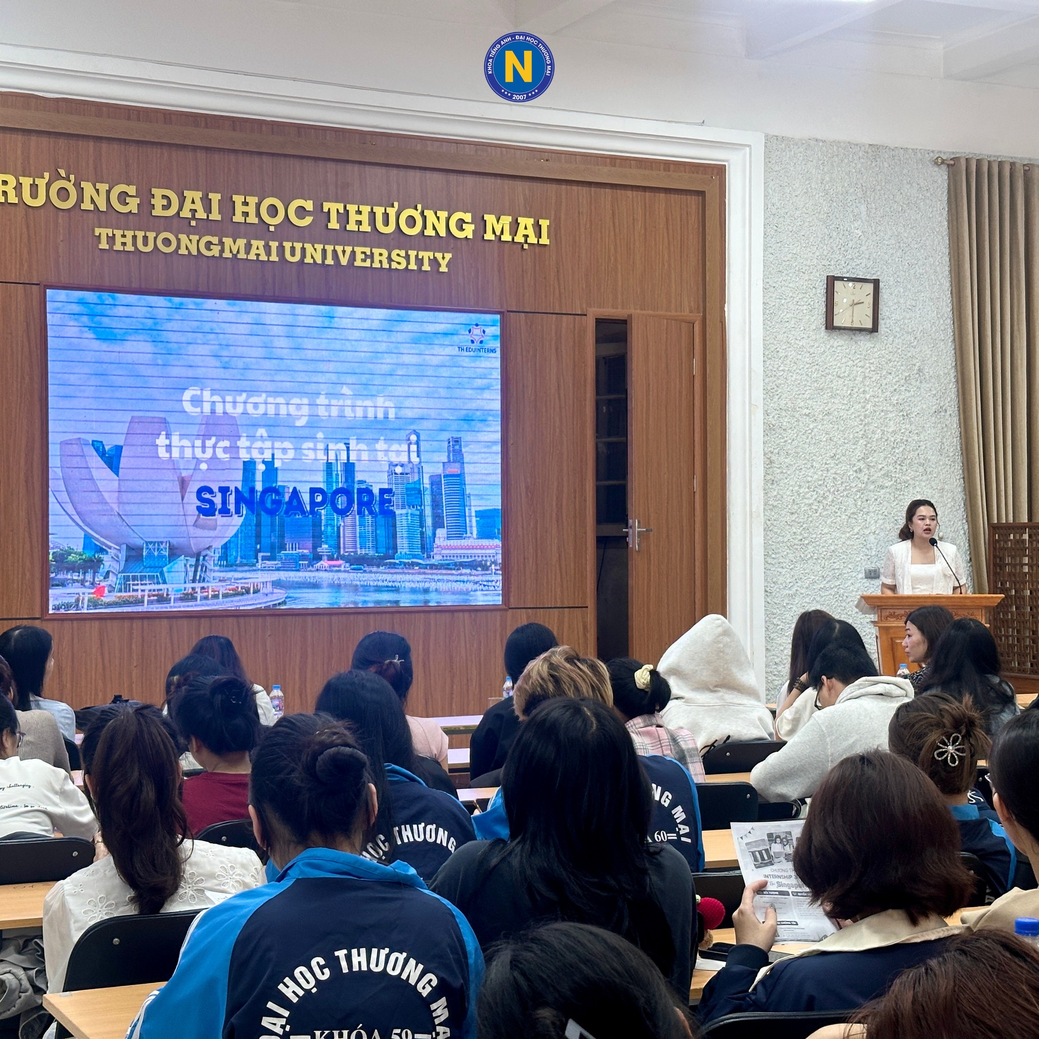 Chiều ngày 24/03/2026, Workshop tuyển thực tập sinh quốc tế do Khoa Tiếng Anh - Trường Đại học Thương mại phối hợp cùng Công ty TNHH TH EDUINTERNS tổ chức đã diễn ra trong không khí cởi mở và vô cùng sôi động. Buổi workshop thu hút sự quan tâm của đông đảo sinh viên, đặc biệt là những bạn đang tìm kiếm cơ hội trải nghiệm môi trường làm việc quốc tế ngay từ khi còn ngồi trên giảng đường.